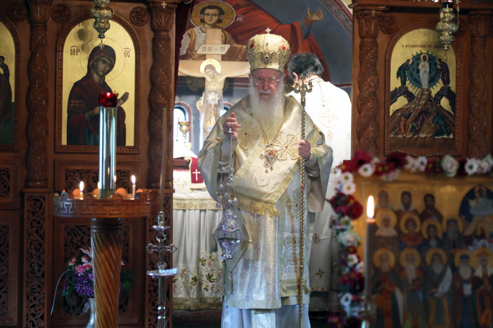 착용하면서 다음과 같이 기도한다. “능하신 이여, 허리에 칼을 차고 보무도 당당하게 나서시옵소서. 진실을 지키고 정의를 세우소서. 당신의 오른팔 무섭게 펼치시라.” (시편 45,4~5) - 오모포리온 - 어깨에 두른다. 그리스도께서 잃어버린 양을 찾아 어깨에 메고 돌아오시듯이 신자들을 하느님께로 인도하는 주교의 직무를 의미한다.