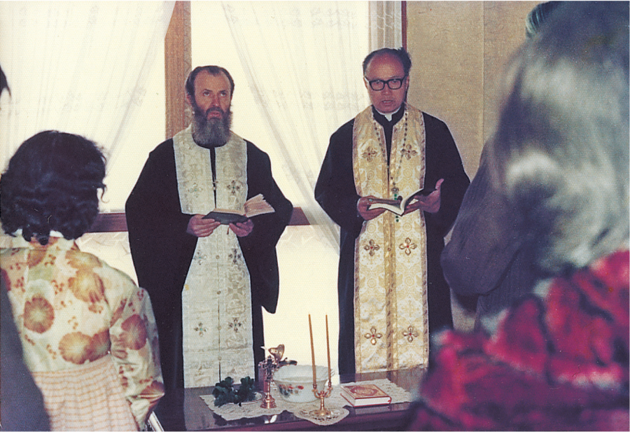 보리스 문이춘 대신부와 함께 사제관 성수식을 거행하고 있다. (1976)