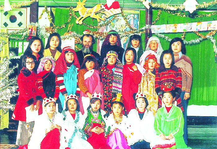 1978년의 성탄절 연극에서 어린이들, 주일 교사들과 함께
