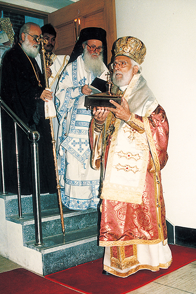 부산 성모 희보 성당 신축 현장에서 거행된 성수식에서 오른쪽에서 세 번째의 소티리오스 대주교 (1999)