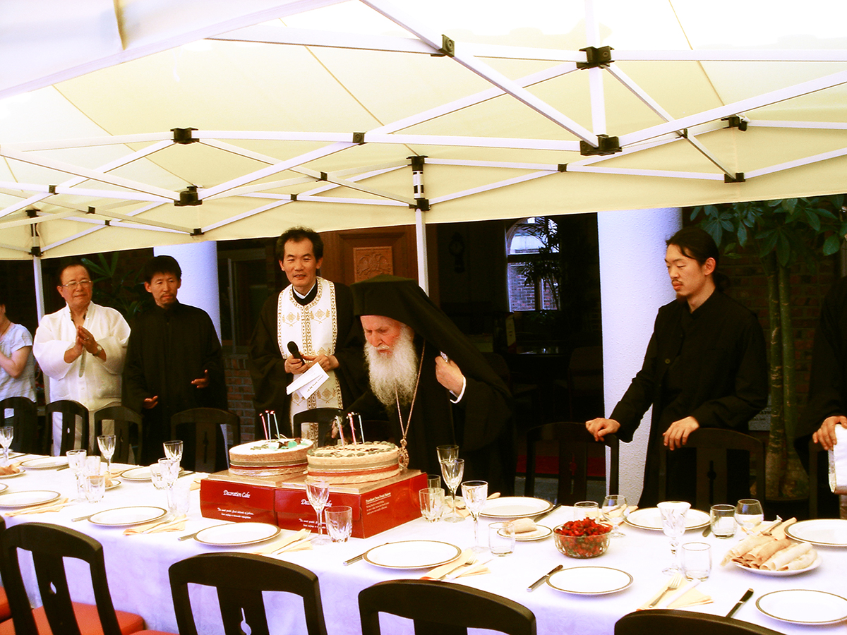 서품 50주년을 맞이하신 소티리오스 대주교가 축하연에서 촛불을 끄고 있다. (2006)