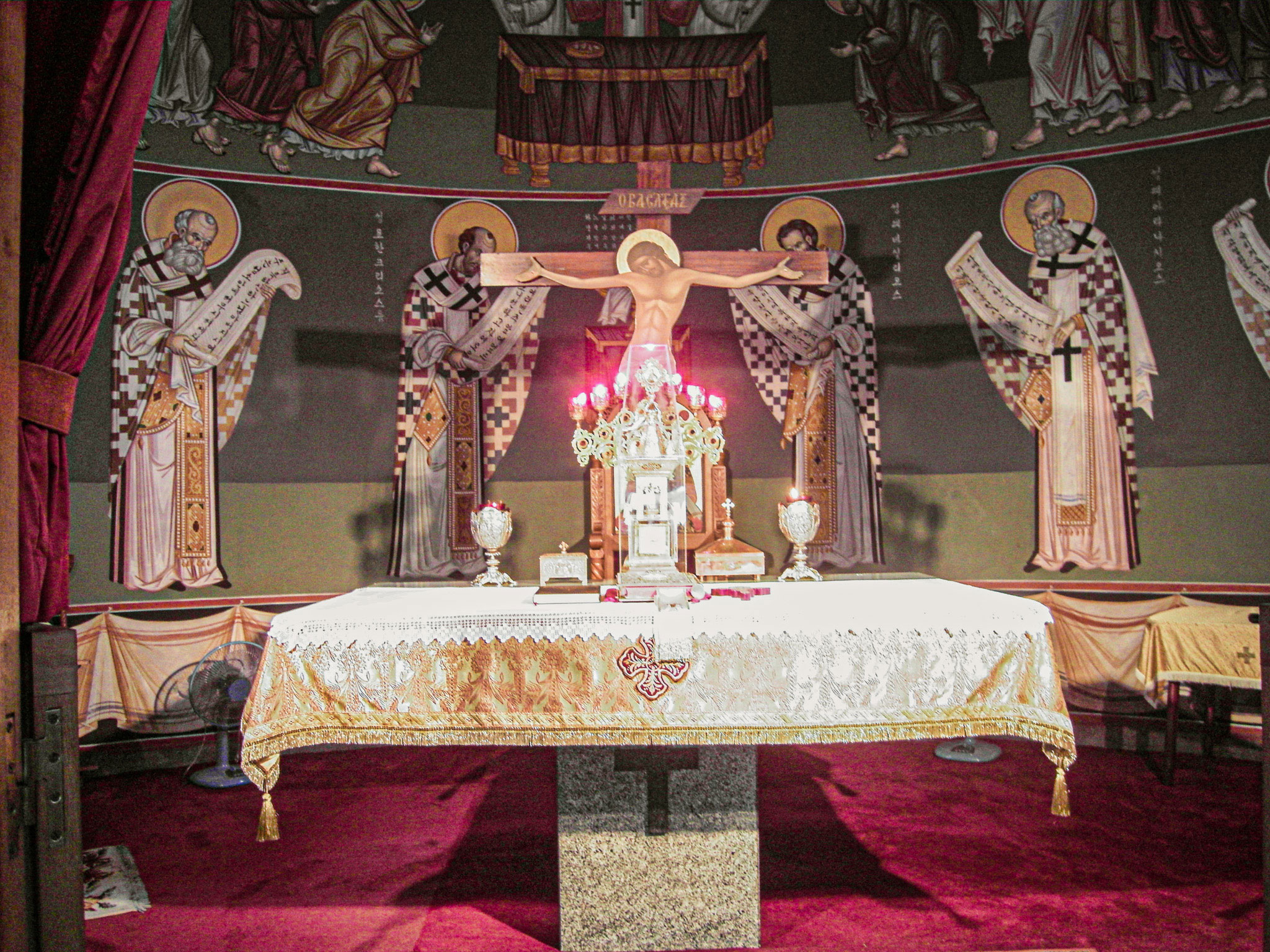 우리 신자들이 거룩한 감사의 성사에 참여하는 것은, 거룩한 사도들이 주님과 함께 했던 바로 그 최후의 만찬 식탁에, 주님을 믿고 고백한 모든 성인들과 함께 실제적으로 참여하고 있는 것임을 의미합니다. 그러므로 우리는 단지 옛 사건을 기억하는 것이 아니라, 그 최후의 만찬에 실제적으로 참여하는 것이며, 이를 통해 주님의 십자가에 달리심, 부활, 승천의 사건을 함께 사는 것입니다. 다른 말로 하면 성찬예배 동안에 우리들이 받는 은총은, 주님의 최후의 만찬에 참여했던 거룩한 사도들이 받은 은총과 동일한 것이며, 이렇게 하여, 주님의 최후 만찬의 거룩한 은총은 시간과 공간을 초월하여, 온 세대 온 세상으로 확장된다는 말입니다.
